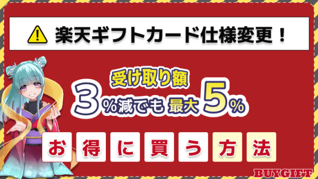 楽天ギフト券 楽天ギフトカード仕様変更!受け取り額3%減でも最大5%お得に買う方法 2025年12月9日 admin-user https://blog.buygift.app/wp-content/uploads/2022/08/buygift-design_logowhite.png BUYGIFT公式ブログ